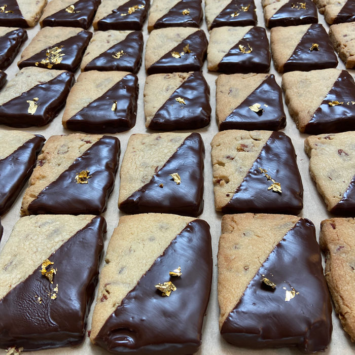 Puff pastry layered with dark chocolate crèmeux, hazelnut toffee, and coffee crème anglaise.